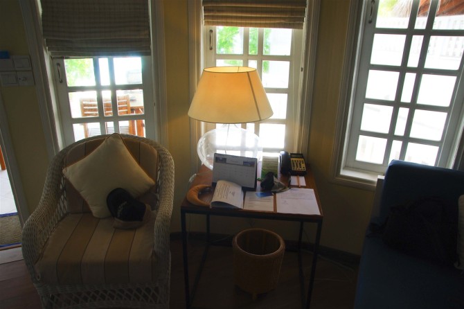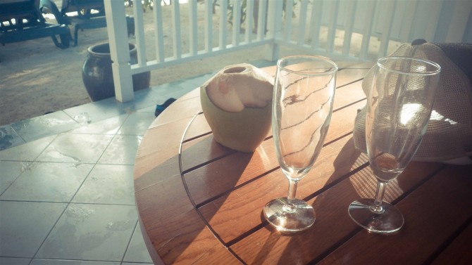 沙屋的门厅,坐着看风景,修理树枝的小黑从我门前的椰子树上砍下来一个椰子,拿来给我感动哇~于是给了他一刀小费哈哈