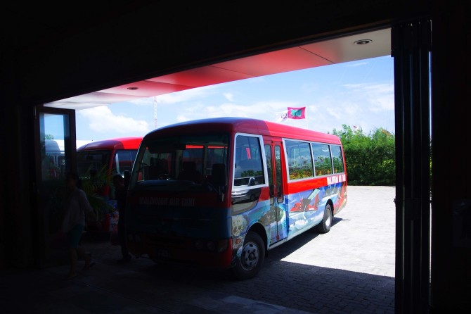水飞公司的小巴,办好机票,托运好行李上这车,就会把你带到水飞侯机处,也在机场岛上,只不过在岛的另一边~~~