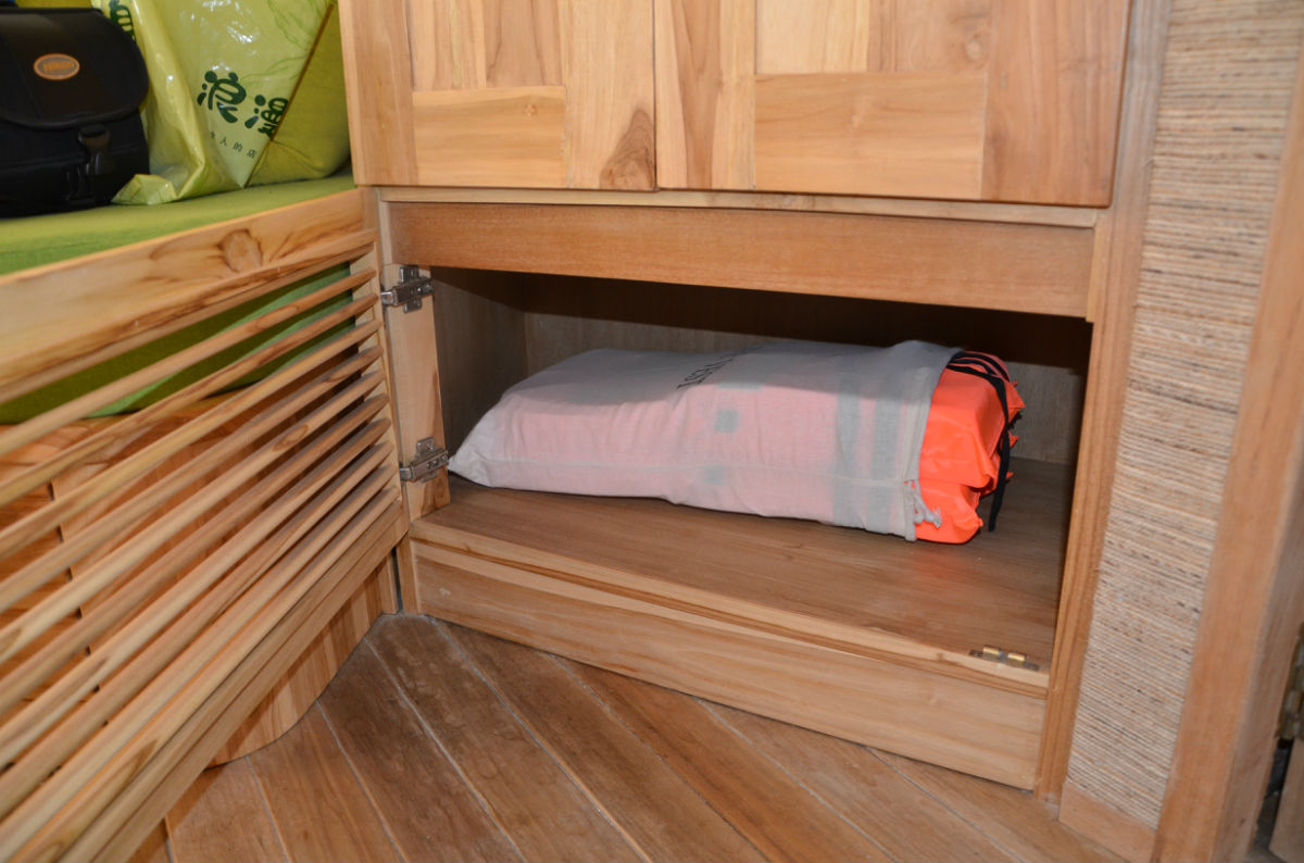 下面的柜子里放的是两个标准救生衣
