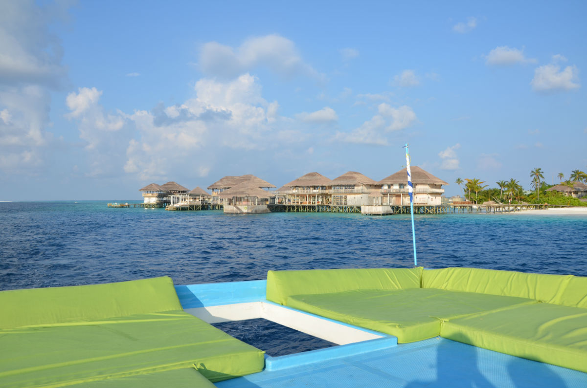 经过大概40分钟,飞机降落到了这个迷你的机场,这时酒店的另外一个服务人员已经在等着我们,拿上行李,走了几步就上了快艇。朝拉姆岛出发。