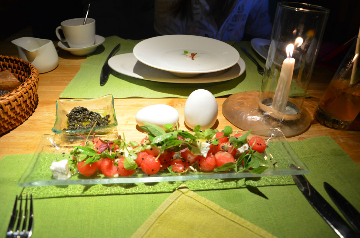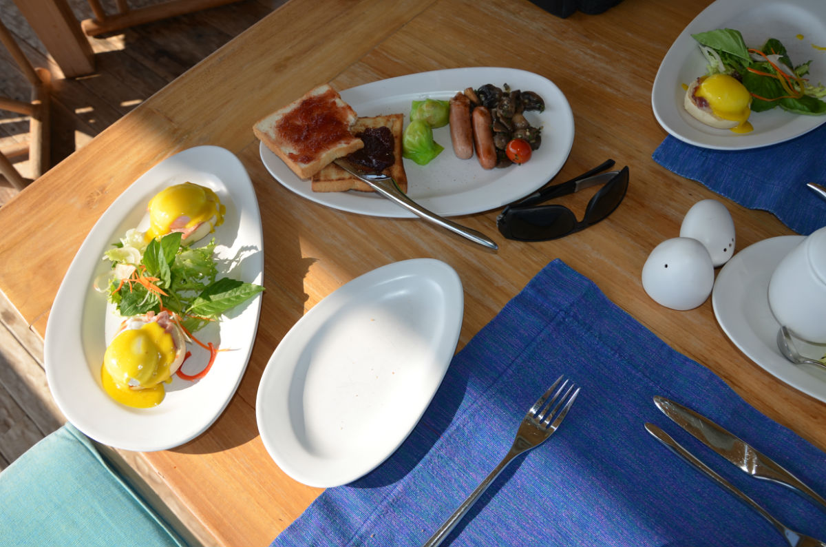除海边的用餐点外还有一个在有机花园旁边的有机餐馆,想享用全有机餐的可以去那边。海边用餐点的菜单上分素餐、微辣和慢生活。每天都会有类似主题菜的菜单,例如会有印度菜、泰国和斯里兰卡菜,除此之外就是常用餐。点餐四步: