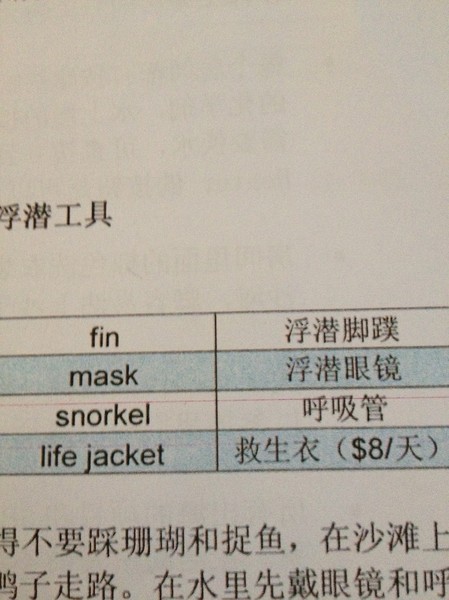 脚蹼、眼镜、呼吸管R岛都是免费的 如果嫌脏 自备呼吸管足够