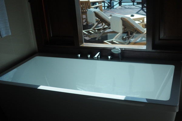室内卫生间的浴缸 透过窗户 边泡澡边看海