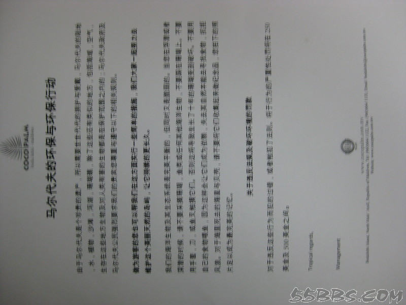 经过了一系列的看攻略,选岛,淘宝......等工作,终于等来了我的COCOPBH之旅。2月1号下午16:30我们登上了东航的飞机来到了马尔代夫的机场岛,一下飞机就感到了马代的热,不过我认为还可以忍受。找到入境卡一看,晕了,跟网上的不太一样,幸好有一对年轻的夫妇会填,教了我们,真是谢谢他们!不过由于不熟练,填的慢了,小黑终于忍不住了,直接带我们盖章了,哈哈