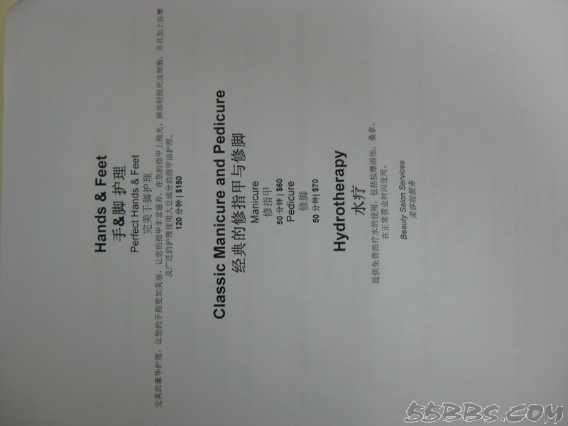 房内的点餐单,可以找中文GO打印一份的,还有中文的SPA单