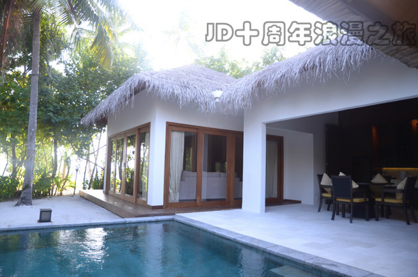 去了以后才知道,JD的沙屋分好几种房型(前面说过,没注意的TX请参考本文第五章节),其中Beach Revives 12套,Island Revives 8套,还有一种600多平的超级沙屋套房2套(叫什么圣殿来着,没记住)。所以,在跟你的代理预定房间的时候,一定记着要问好沙屋的房间类型(水屋就没这么麻烦,基本上咱们能住得起的,就一种房型)。说实话,在上岛之前,甚至是住了2晚之后,我们才知道沙屋还有这样的区别,好在我们的代理很厚道,帮我们订的是300平的Island Revives,确实很爽很舒服!
