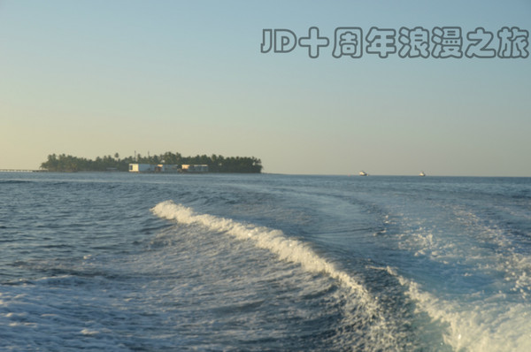 在飞快的颠簸中,JD渐行渐远,宛如一簇美丽的花环,静静地扣在了碧蓝的大海上。我们长久地凝望着她,越来越小,越来越模糊,直到再也看不见…… 我们知道,我们真的和她,再见了……