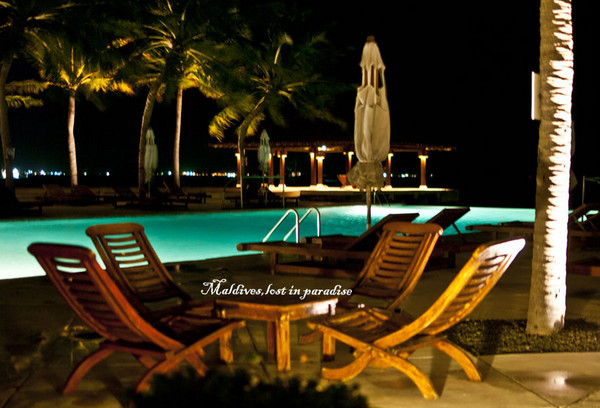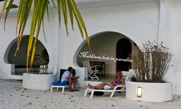 第一天我在忙碌的拍摄中度过,这是我这趟出差的任务,所以一切变得索然无味,直到我看到一群爱学习的外国人拿着书在沙滩上安详的边享受着日光浴边看 书的时候,我才意识到,马尔代夫的美不是一个人能体会的,要么远离他,乘着水飞机,和他拉开距离,看到如宝石光晕的泻湖的全貌;要么和心爱的人一起静静的 去感受。