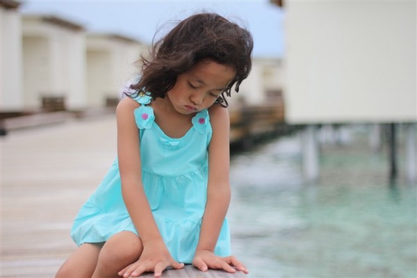 这边的房间已经收拾好了,新的房间还在收拾当中,小黑让我们等一下,说客房部经理会来带我们去新的房间。虽然他说我们可以在房间里等,但看到到处都不能再碰,呆在里面也不自在,于是我带璇出来坐在栈道旁等待。这期间,璇璇一直是撅着嘴不高兴。