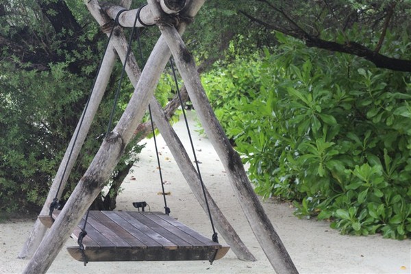 来之前曾在攻略里看有人说岛很小,二十分钟就能走完一圈。可是,我怎么觉得这个岛好大,环岛一圈的路程好远。我带着相机和三脚架,走走停停,每个地方看到的风景都不一样。沿着海边基本上都是沙滩别墅,每栋别墅的视野都不一样。岛上还有一种房型是单层沙滩别墅,费用较双层别墅和水上屋便宜,但因为房间直接建在沙地上(也是海景房),看攻略里说房间的地上经常有热带昆虫光临。据说老外选这种房型的比较多,我看见很多房间的外面都晾晒着长长的帆板,是他们专门托运过来冲浪的。我心里直感叹,老外们度假就是尽情地享受岛上的阳光、沙滩和海浪,而国人们度假则大多是打扮得无比美丽,拿着相机到处晃(一如我),这样未免丧失了度假的意义。