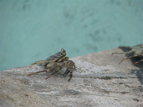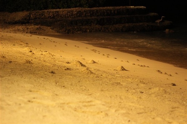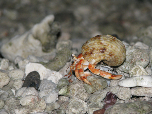 天渐渐黑下来,沙滩上的螃蟹们也纷纷出来活动了,有些胆子大的禁不住香味的诱惑还爬进了餐厅,这才是人与动物和谐共处。餐厅外的这片沙滩上螃蟹特别多,可能是waiter们经常用面包喂它们的缘故吧。密密麻麻的螃蟹,有的背着贝壳(叫寄居蟹)到处走,没有背壳的就直接在沙滩上打洞,不停地用爪子把洞里的沙子往外送。当有面包丢过去时,它们还会为抢面包打起来。