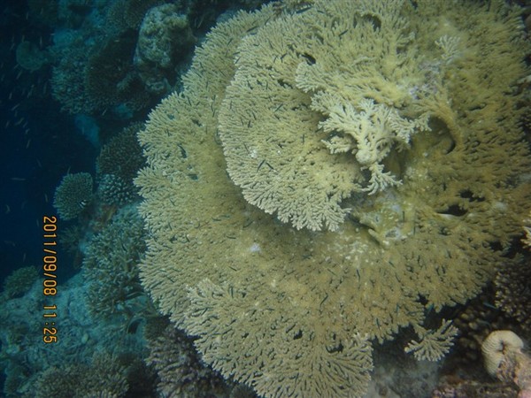 我们这次看鱼的区域是一片深海沟,也就是海底悬崖。下水前,领队一再强调下海后不能在海沟的浅水区停留,因为那里有大片的珊瑚,我们稍不留神就会踩到珊瑚。我们在领队的带领下,沿着海沟往前游。海沟浅水处是各种各样的珊瑚,深水处则是成群结队的各种不知名的鱼儿,红的、黄的、绿的……我追着它们拍照,它们一会儿躲进了珊瑚里,一会儿又游进了海沟深处。我不禁想起了动画片《海底总动员》里开头的一句话:在澳大利亚东北部五彩斑斓的大堡礁群,生活着很多漂亮的海洋生物……浅水区的珊瑚太美了,我在那里流连忘返地拍照,虽然很小心地不碰到它们,但领队还是游回来把我请了出去,马尔代夫人对海洋的保护意识已经刻到骨子里去了。