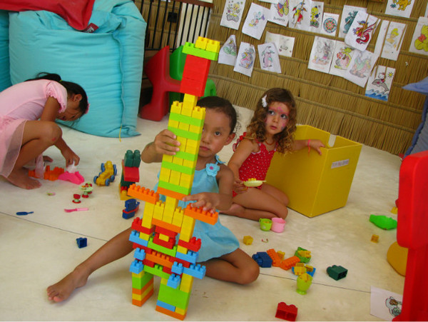 环岛一圈回到游泳池边,璇璇还在水里嬉戏,我看中午太阳太大,她已经晒得跟岛上的小黑没什么区别了,赶紧让她上岸,回房间洗澡换衣服。洗完澡,吃了方便面,她又跑到儿童中心玩积木。碰到了昨天的那个小洋娃娃。小洋娃娃才3岁,有两个双胞胎哥哥,他们全家从奥地利过来度假。她的妈妈看起来年纪不小,曾有一次,璇璇问她妈妈:“你是她奶奶吗?”幸好她妈妈听不懂中国话,笑着问我她说什么,我想了一下,还是没有告诉她实话。