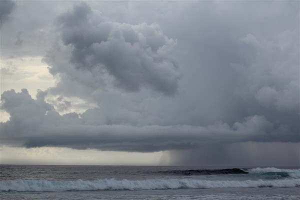 璇璇一边吃,一边迫不及待地想去旁边的游泳池游泳。可是天有不测风云,吃到半路上,竟然狂风大作,下起暴雨来。热带的雨真是说来就来,一点不带含糊的,大家纷纷移到餐厅里面,由于雨太大,餐厅的小黑们都在忙着放下门上的雨帘,不过还不忘安慰我们:很快就会停的。
