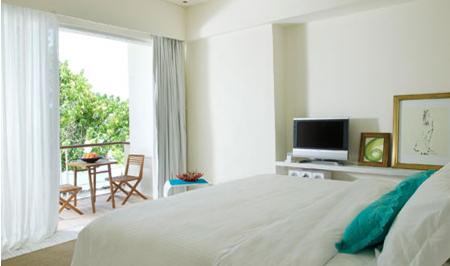 电瓶车七弯八拐地终于在海边的一条栈道边停下了,那梦想了无数次的,在图片里出现了无数次的水上屋就这样静静地出现在了我们的面前。我掩饰住心里的激动,跟着前台MM来到了一栋楼前。打开门,映入眼帘的是那孔雀蓝和白色相间的和图片中一模一样的房间!前台MM给我介绍了一下房间的设施以及每天早餐的时间。待她离开,我和璇璇立即兴奋地大叫着扑到了那美丽的床上,璇璇从床上蹦到沙发上,开心得无以复加——我们的梦想终于成为现实了!!