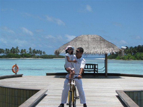 游泳回来后我把浴缸里放满温热的水,浴缸是放在卫生间玻璃墙外露天的木地板上的,我和璇璇一人分坐一头,泡在温热的水里,手里拿着各自喜欢的零食,我满心的喜悦就像这浴缸里的水一样,似乎快要溢出来。这时,璇璇说:“妈妈,我觉得好幸福!要是爸爸也能来,我们一家人永远住在这里就好了。”看着她的小样儿,我笑了,有个声音在心里说:宝贝,这正是妈妈此刻的心情呢。也许这就是马尔代夫的魔力:她能让任何身在此时此刻的人,生出同一个美丽的愿望!