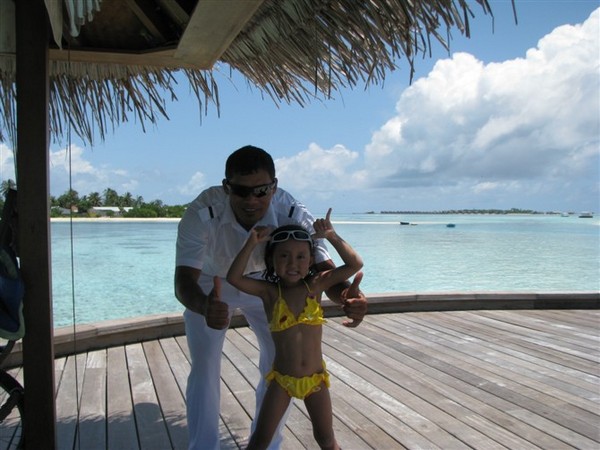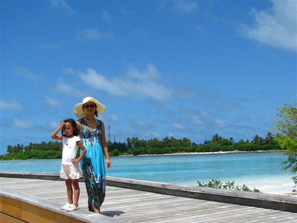 下午,外面的太阳很大,我们没有外出,在房间里吹着空调,享受这难得的闲暇时光。我把笔记本拿出来搜索到了这里的无线网,终于登录了QQ。看见代理AMMI在上面,她焦急地问我与家里联系了没有,说璇爸都把电话打到她那里去了,询问酒店的联系方式。我这才想起由于我来之前忘了开通国际漫游,手机现在已经处于无法接通的状态了。AMMI所在的旅行社赠送的马尔代夫电话卡我装上了,却不知道怎样设置,还是无法拨通。所以,璇爸已经连续两天没有我们的消息了,想着这是我们娘儿俩第一次出国,也不知道是否安全,估计已经急坏了。我只好拜托AMMI帮我给璇爸打个电话,让他上QQ,这才联系上了璇爸。呵呵,也真够曲折的。璇爸要我每天都要通过QQ留个平安的信息给他,这才放了心。
