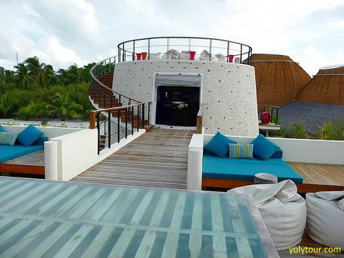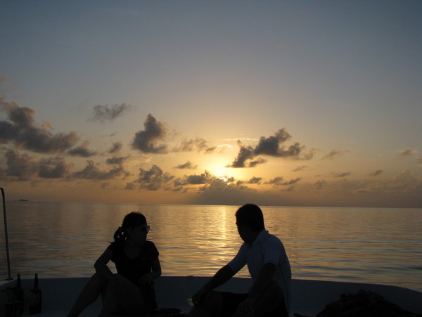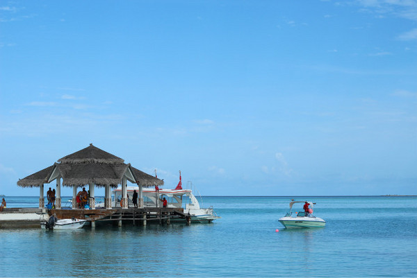 参加今天落日远航的全是中国人,从这几天看到的无数个中国旅行团来看,康杜玛岛已经快要成为中国的海南了。费用国语给我们介绍了一下船上的注意事项,快艇就出发了。船驶离康杜玛岛,让我们有了一次远距离回看康杜玛岛的机会。跟在岛上看到的感觉不一样,岛被浅蓝的海水包围着,岸边白色的快艇、岸上被椰树围绕的巨大椰子壳顶的接待中心和餐厅,这样望去竟有一种不知庐山真面目,只缘身在此山中的感觉。