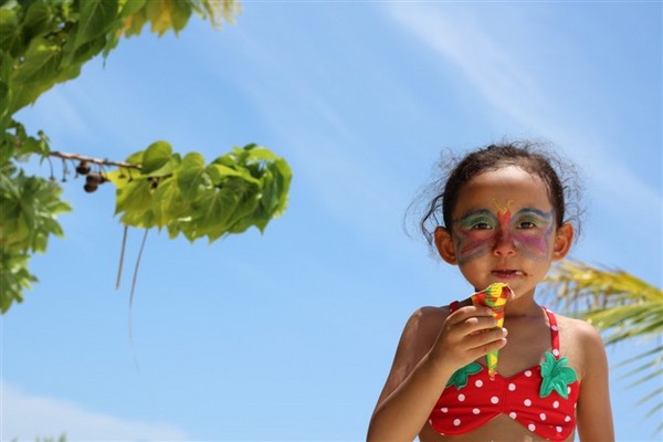 上午报名参加了免费的浮潜培训,要参加出海浮潜必须要先参加浮潜培训。浮潜有免费的也有收费的,听说免费浮潜的地方看不到很漂亮的海底景色,所以我报名参加了明天下午的出海看海龟+浮潜(收费),今天上午必须参加浮潜培训。我去参加培训了,璇璇就在儿童中心玩,那里的服务人员会帮忙照看,不超过中午12点是不收费的。