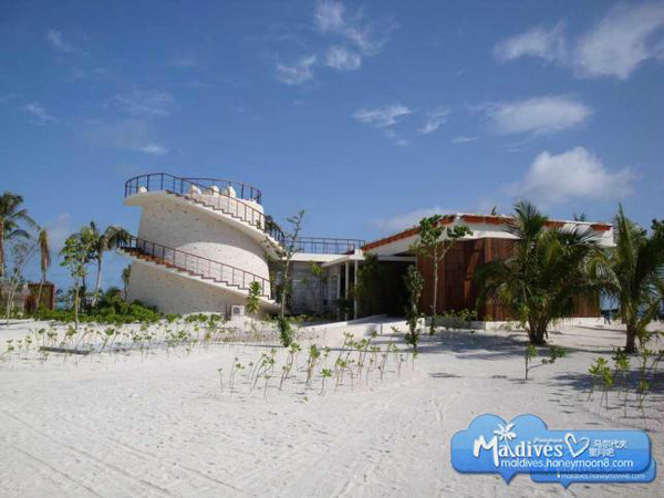 上岸后,本来按照攻略里的说法,是应该要给船员小费的,但我有点晕船,而且看见有好几位船员,只好装傻了。行李拿上来后,我发现一直抱在璇璇手里的那个布娃娃不见了,可能是刚才睡着的时候掉到快艇里了,一名小黑进船舱去找了一圈,出来示意什么都没有。我想丢了就算了吧,反正是飞机上发的。几分钟后,来接我们的电瓶车把我们带到了大堂,办理入住手续。行李没有跟着我们,根据攻略上说的,应该是已经送到我们的房间去了。前台服务的MM竟然是一名中国女孩,这真让我这个英语菜鸟有种找到了祖国亲人的感觉!在前台的蘑菇椅里休息了一会,喝了杯特意为刚到的游客准备的含有姜的饮料,感觉没有那么恶心了。