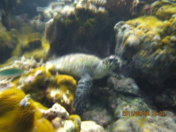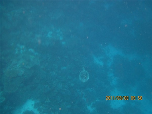 到了看海龟的地方,由于知道我第一次没有看到海龟,所以这次领队找到海龟后,专门游过来把我的相机拿走,潜到海底帮我近距离拍了几张海龟,我也跟在后面远远地看到了海龟的身影,很有点小激动。