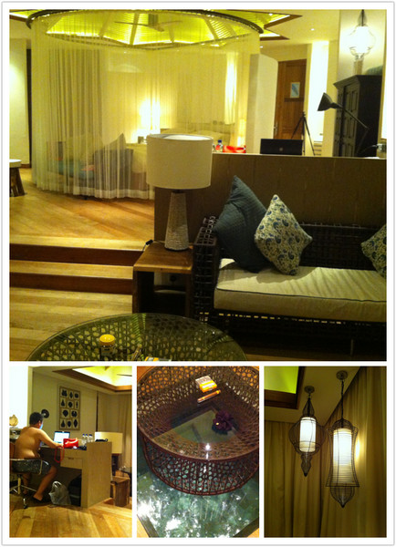 沙屋房间蛮大的188平,风格设计吧,以木材环保为主题,虽然不是我个人最最喜欢的风格但是老公却乐在其中,说这些都是上好的价格不菲的木材,不是那种充斥着明朗时尚现代设计感以由玻璃元素而折射光线的时尚材质和概念家具,却把奢华以一种低调并融入热带岛国当地风情的理念淋漓尽致展示了出来,上几张房间一览图:
