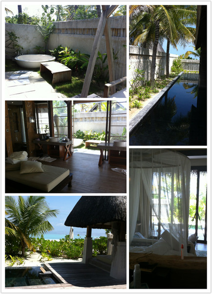 一个人高马大的管家,安置好我们的行李让我们上车说带我们去房间,顺带环绕整个岛介绍了一下上面的娱乐设施餐厅等概况,岛不大,一会儿一圈就绕完了。头两晚定的是沙滩别墅,到啦~~~~Beach Villa 11 (*^__^*) 嘻嘻……