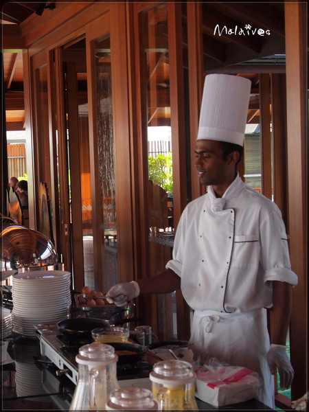 一觉睡到自然醒。发现一贯喜欢赖床的老公居然早早就爬起来四处照相啦,真是乖乖。洗漱完毕后奔向自助餐厅。自助餐厅也是面向大海的,一边欣赏美景一边品尝美食,好不自在。品种还算丰富,喜欢一种鸡蛋煎饼,放了很多料,洋葱、青椒、番茄碎等等,小黑现煎的,味道很香。最爱这里的果汁了,都是鲜榨的,有哈密瓜的、菠萝的、西瓜的、苹果的、猕猴桃的,还有一种混合的,非常好喝。