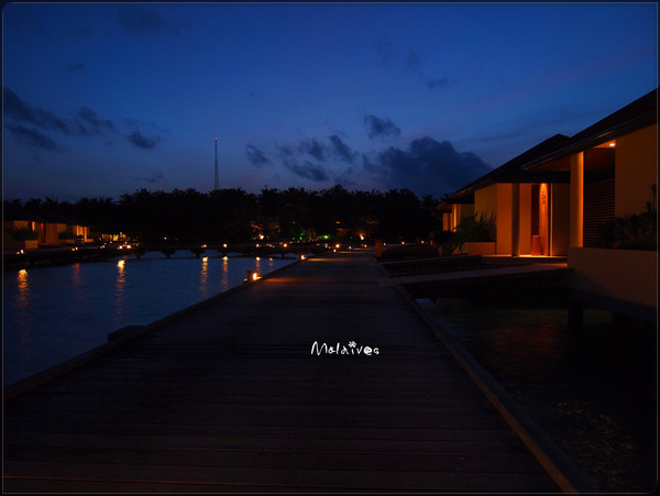 快艇一路狂飙,水花四溅,历经20分钟,终于到达了天堂岛。小黑勤快的帮我们拿着行旅,还送上了毛巾和冰镇冷饮,对得起1刀的小费啦。办好了入住手续,终于来到了水屋,条件相当不错,小黑交代了注意事项后离开了。看看表,才发现已经是北京时间凌晨5点啦(当地时间凌晨2点)。迫不及待的跑到露台,仰望天空,皓月当空;低头俯视,海水清澈;闭上双眼,海风拂面……这就是我期盼已久的马尔代夫吗?