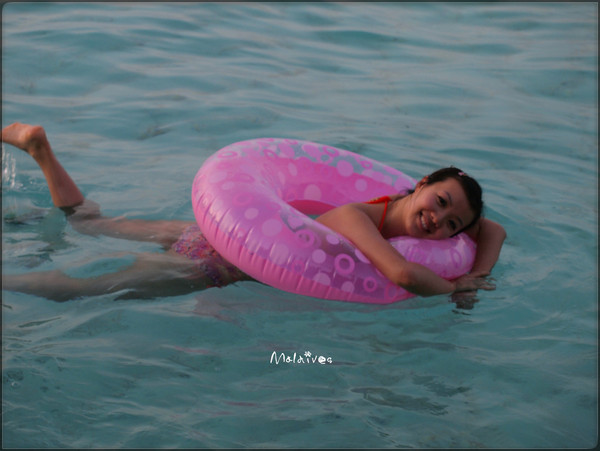 游累了,躺在阳台的躺椅上,听着海浪拍打水屋的声音,看着远处那一抹抹蓝,真的好像醉了。脑子有些昏昏沉沉,想要睡去,可又觉得可惜了这美丽景色。偷偷睁开一点眼,看一下美景是否还在,害怕这是幻觉,害怕这是梦境。还好,美景还在这里,我们还在美景里。这样,真好。