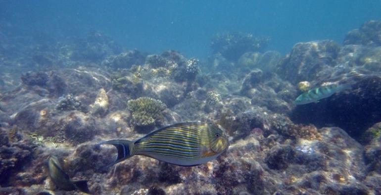水下都是珊瑚,以至于划船时都要小心避让,爱护好珊瑚才有美丽的鱼群。