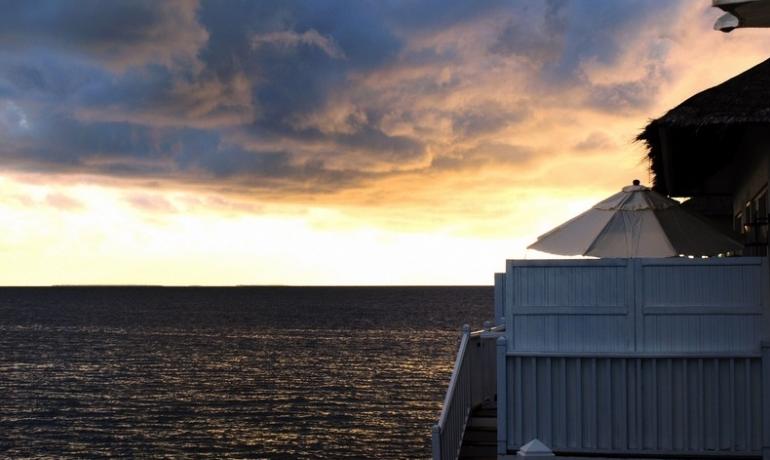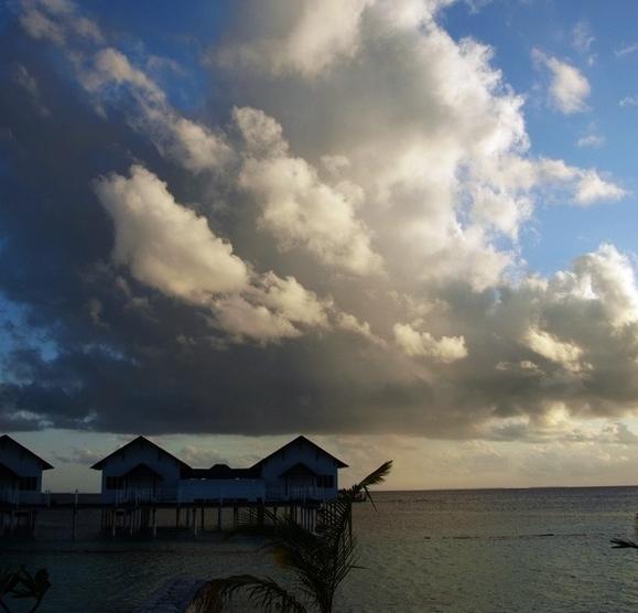 订下了目标,但是预订时碰到了苦难,原本11月出发的行程一再延后到12月12日,郁闷只能找了代理,同样的落日豪华水屋也没订到,退一部,换成豪华水上家庭房,呵呵,没想到该房房型不错,屋前无遮挡,前看日出,后看日落,下面鱼成群成队,五彩缤纷,还有PS3和双层床。