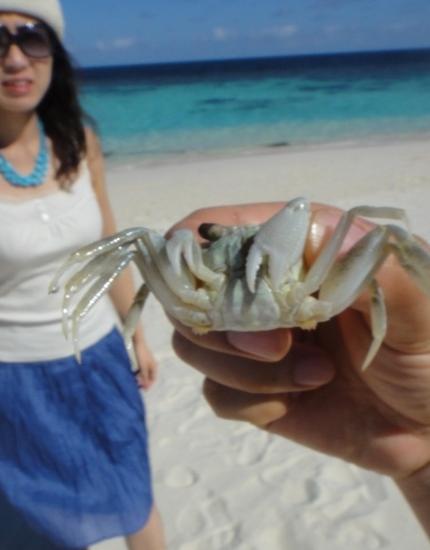 这时有个小插曲,我在沙滩上抓大了个比较大的螃蟹,结果后来得知它是职业被抓对象,我们小队的济南小夫妻刚抓过它,后来在“伪”环保人士猫太的干预下,我把它移民到另一个沙滩了。