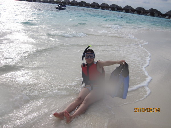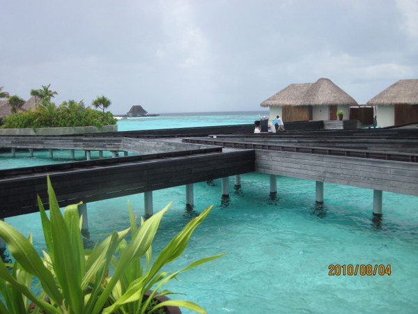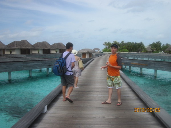 这个岛唯一让我觉得好得地方,水下美丽的景色,彩色的珊瑚还有各种各样的鱼,据说游到离岛几百米的地方会有更多更漂亮的珊瑚和鱼,不过要穿过大片的珊瑚礁,需要按照岛上设定的线路游出去,不然非常容易被珊瑚刮伤,被珊瑚刮了可是很疼的哦,我就被刮到了,都回国大半个月了才好。可是由于我们的游泳技术太差,没敢去尝试。不过水屋周围就有很多珊瑚和鱼,对于第一次来的我们,已经是很兴奋了,每天在海里浮浅的时光就是我在这个岛上最快乐的时候了,什么烦心事都会抛在脑后。