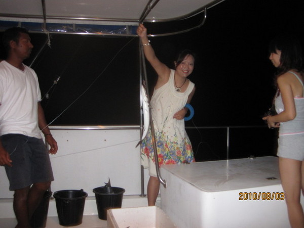 看看吧,我的收获,是来海钓的10个人里面的NO.1哦!老公就不争气了,一条也没有钓到,还把鱼钩耍脱了两个,怕是碰到鲨鱼了哦,哈哈,幸好没叫我们赔鱼钩
