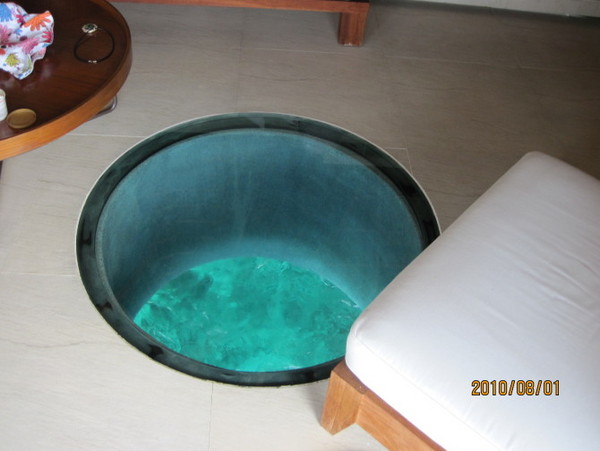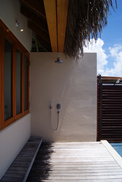 室外淋浴,比起四季酒店的只能说简陋了,就在泳池旁边的墙上挂了个花洒和喷头。在四季岛的时候,老公最喜欢在露天淋雨冲澡了,这边恐怕是不行了,要在这里洗的话,恐怕还是要点勇气哦
