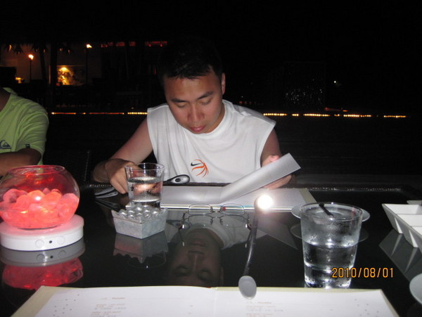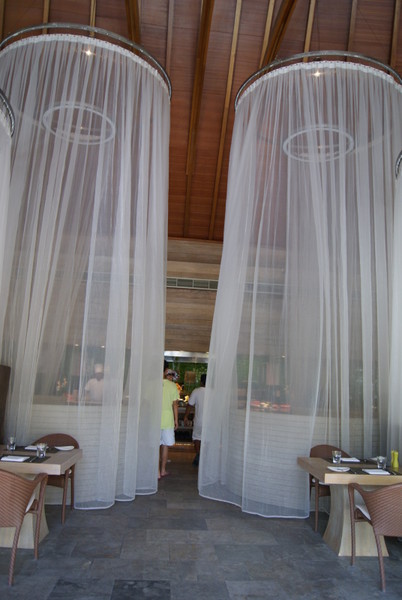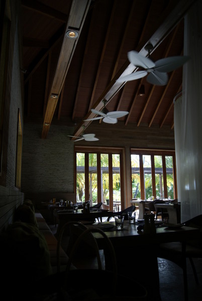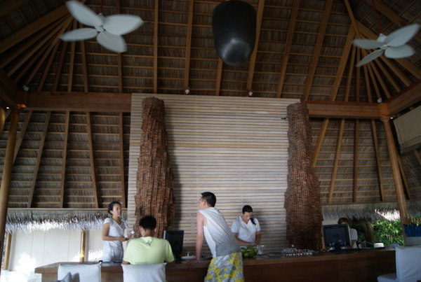 吃完饭回去,又是让人生气的事情,居然酒店没有给我们铺蜜月花床,这服务一比较,真的无话可说。 吃早餐的地方,也是岛上的主餐厅,只有这个餐厅是全天侯开放的。其他的餐厅FISH是晚上开,还有一个水下酒吧好像是一个星期开一个晚上,FIRE是烧烤自助,一周也只开两天,选择很有局限性,不合理