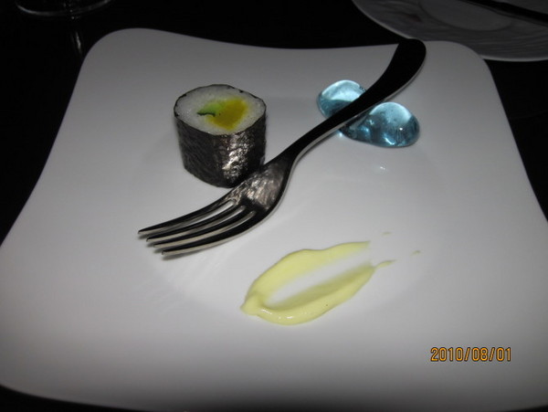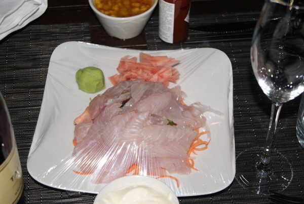 何老师的那条鱼还有跟法国人换回来的那条鱼,都做成了生鱼片,配的面包,我们房间赠送的香槟还没有喝,不要浪费了,还有很多各种味道的调味酱,还有辣椒面哦!我们预定的时候特别跟酒店提出来的,想不到真的有,而且还很辣!!
