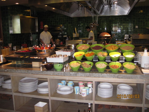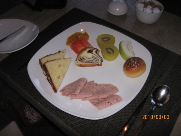 品种比较少,全是面包牛奶麦片,根本没有肉,只有几片香肠,而且每天都是一样的三个品种,现做的就只有炒饭炒面煎鸡蛋,四季酒店的香肠都起码7,8种,而且每天有变化,还有各种做法的鱼和海鲜,我好怀念四季丰盛的早餐