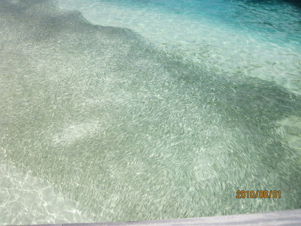 看见岸边大片大片黑黑的了吗?那里就是成群的小鱼苗,简直太多了,岛四周沿岸全部都是