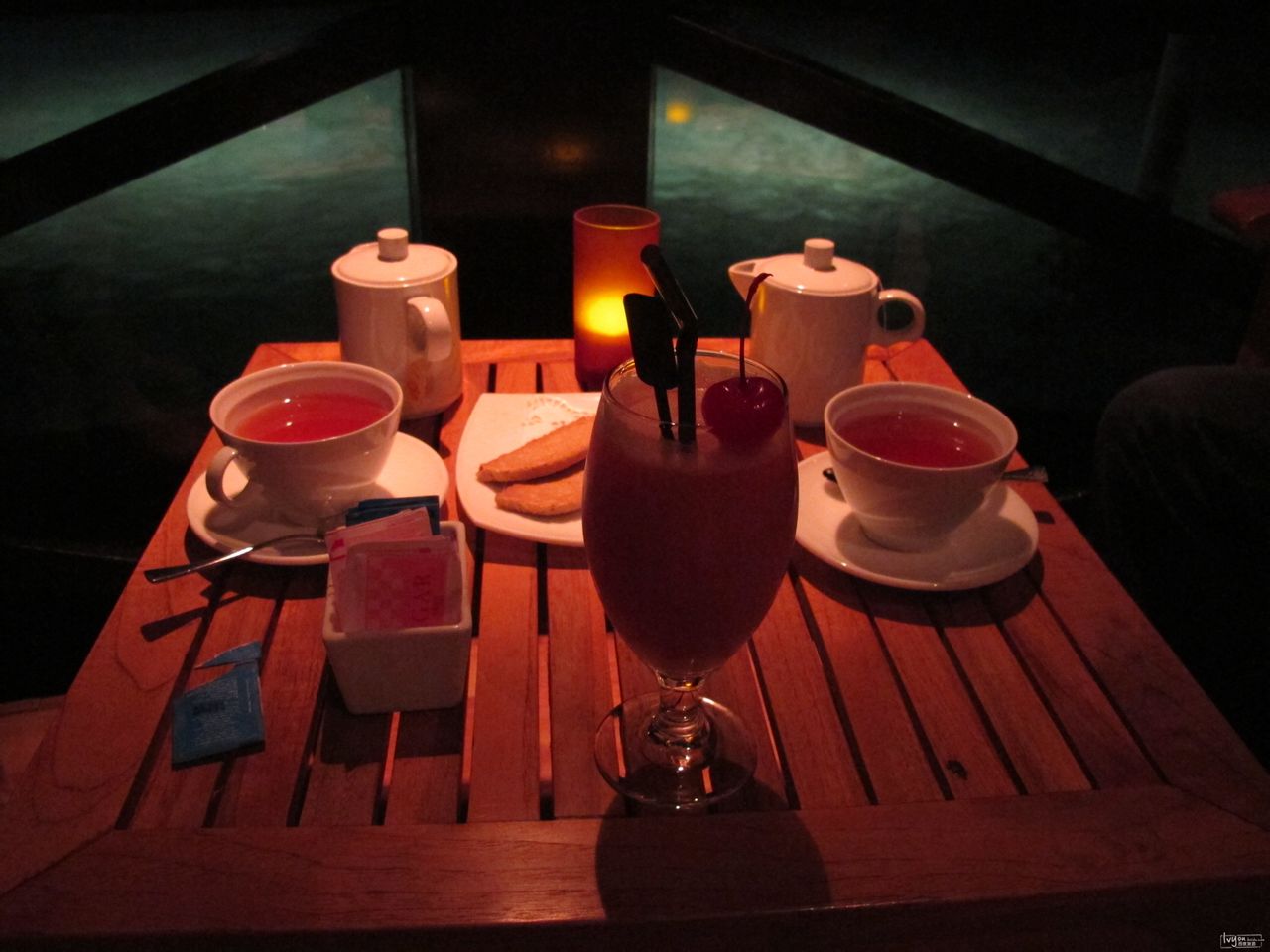 红茶与混合果汁,那配的小点心酥酥的,有淡淡的奶香