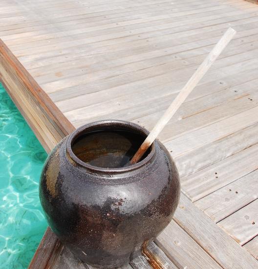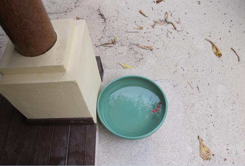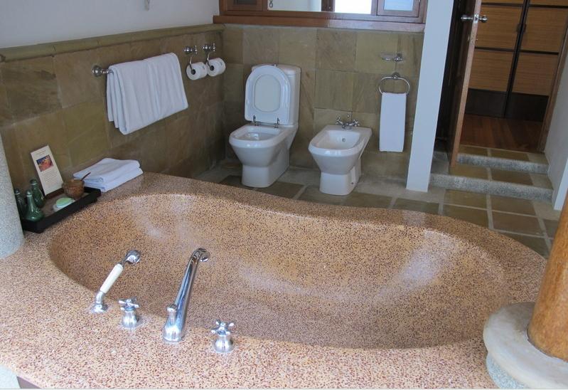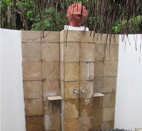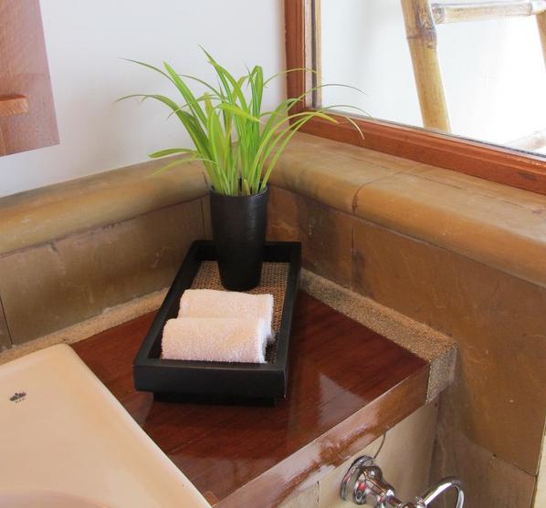 水屋的洗漱间也是露天的,要比沙屋的豪华,这是仅存的一张照片,在浴缸旁边的小网,可以看到海,只是不知道有什么作用