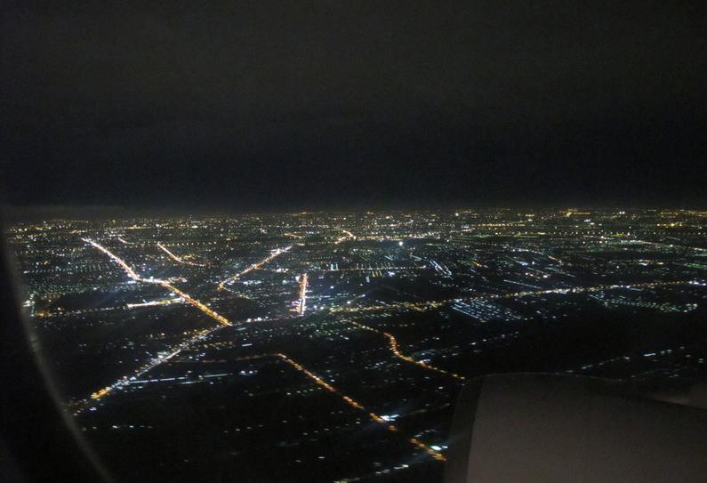 从我们上飞机到飞机起飞经历了1个半小时,不知道怎的,飞机上虽然大部分全是中国人,但是人们没有像国内航班那样急躁,飞机上也没有发安慰的小食品,4点10分我们才正式起飞......