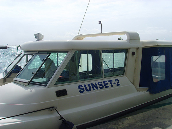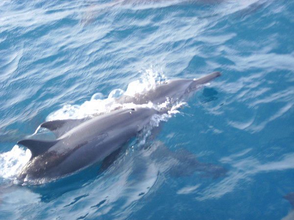 出海看海豚,下午5点至7点半,提前15分钟到大堂集合。那天中午我吃完饭后,不知是吃撑了还是怎么回事,肚子就不舒服,还睡了一觉,起来后就疼了,我最怕的事还是发生了,还好带了药,吃了就出发了。上船前,妈妈还说,实在不行就不去了。我可不想浪费这钱,45美元一人呢!而且我超想看的!上船后,就8个人,大家都在不停的拍照,而我连拍照的劲都没了,就干坐着。开了不久,就看到海豚了,我刚开始还勉强照了2张相,他们都到船头外面去看了,我就靠着站在那里,这时有个小黑1过来,要把我相机拿过去,帮我照!哈哈!我好意外的!于是我就一个人进去坐着了!再后来就是干脆躺着了,还吐了。小黑2帮我拿桶,帮我倒我的呕吐物,底下这位小黑船长替我拿了浴巾给我枕着,后来又拿东西给我盖着,等我再次吐的时候,帮我照相的小黑1就过来坐在我对面,还摸我额头看我烧不烧。等到发饮料、点心、酒时,我都没吃到!郁闷死了!!光吐就吐咧,一上船其实还想拉肚子,后来实在撑不住了,对小黑船长说我要回房,现在!于是小黑1征求了其他游客的意见,都同意了,哎,让他们少玩了半个多小时,真是不好意思呀!到码头后,已经有电瓶车在等着我了。还问我去不去看医生(岛上有),我们说不去,就把我们送到了水屋,小黑1一直把我们送到房间,进房后,我让他等等,特地进去拿了2美元给他,他还跟我推了半天,不要。我说真的很感谢你,硬是给他了。回房后又吃了种药,睡了一觉,那天晚餐都没吃!浪费了一餐,哎!还好睡到晚上9点起来肚子就不疼了!我想这就是我在马代最特别的经历了吧,难忘