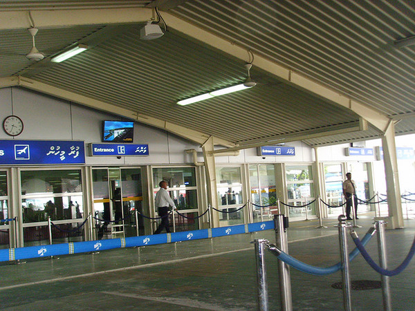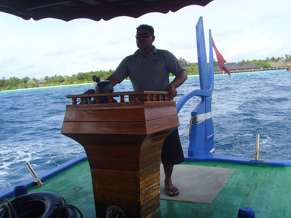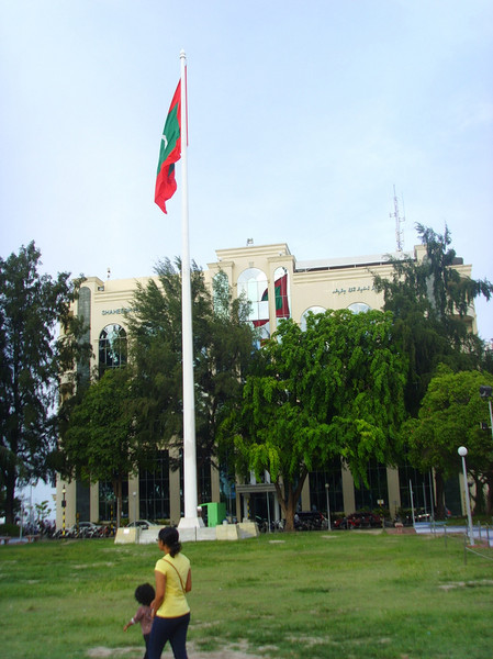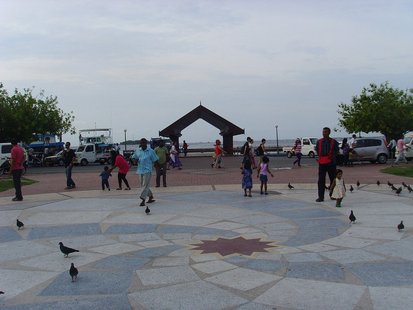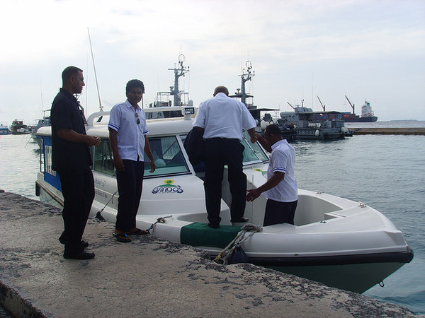 到机场后,把行李给一个小黑看管,一个箱子3美元,机场寄存的话是5美元。另一个小黑就带我们坐船去逛首都马累,坐船是1美元一人,另外我们一人给了他1美元。10分钟就到了。马累真的很小!下面这位背对着的好像是总统哦!他出来派头就不一样,门口都有警察候着