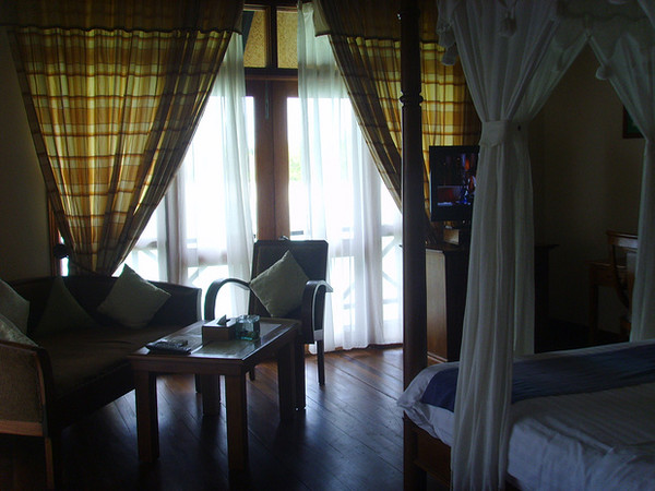 吃完饭,带我们去房间,行李小黑会帮你送过去。先住沙屋,一栋有4间,我们住一楼左边这间。楼上是住的前面说的在拿行李时碰到的那对江西夫妻