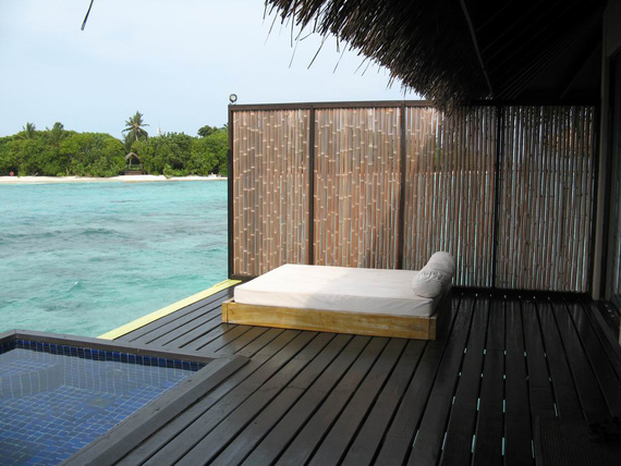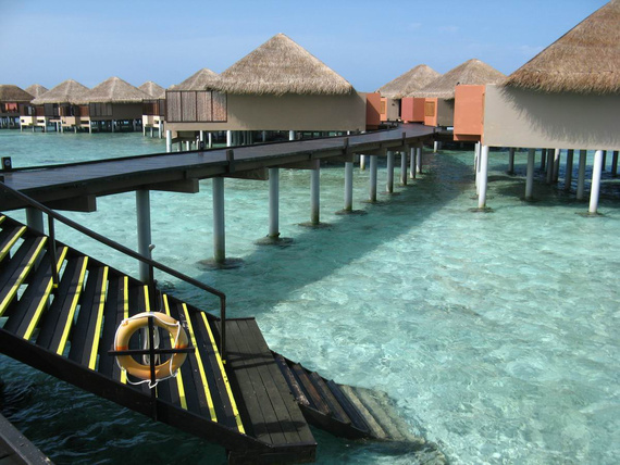 7月6日,拉开窗帘,可以躺在床上看日出,非常美妙的感觉。早餐是点餐式的(只要吃得掉,点多少都可以),厨师现做,很好吃。上午也是去浮潜,浮潜用具也是免费提供。瓦度岛的珊瑚比维拉沙鲁多且好看,不过由于我浮潜没多久脚上就多处受伤,所以没往远处游,据说远处要漂亮很多,还能看到海龟,遗憾啊。浮潜好了,一整天就呆在水上屋没出门。早餐吃的晚也吃的很饱,午饭就省了,晚饭吃了自己带的东西,没到餐厅去吃,太贵。两个岛上的出海活动也都没有参加,总之这几天除了给掉几块钱小费,没有花其他钱。惭愧啊,都到马尔代夫了还不舍得花钱(估计我们是在马尔代夫最抠门的游客了)。