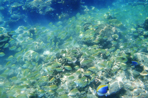 深海浮潜,有很多很多的鱼群,非常的美丽,第一次参加深海浮潜,真的让我惊艳了一把,各色各样的鱼儿在你身边自在的游来游去。运气好的话,还可以看见海龟
