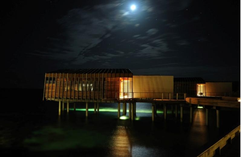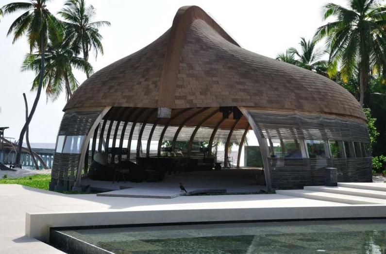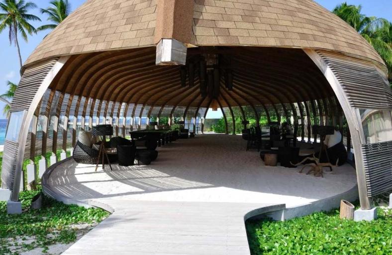 reception,是一个倒扣的多尼船的形状,地上全都是沙子,很特别