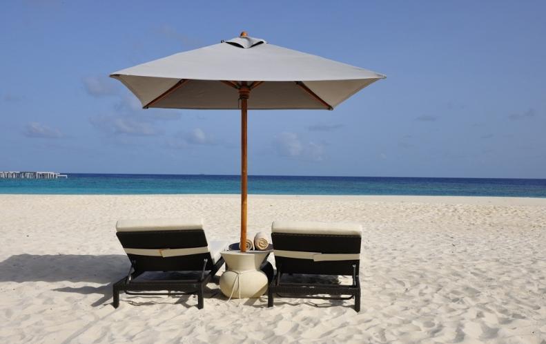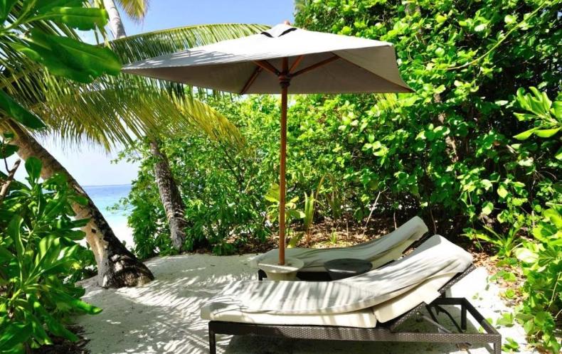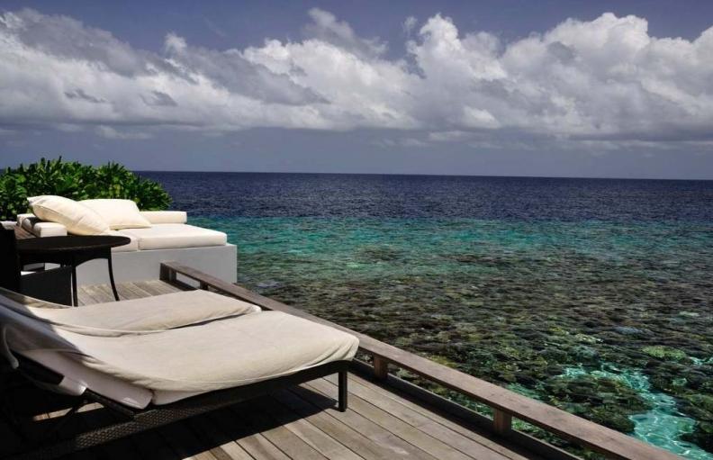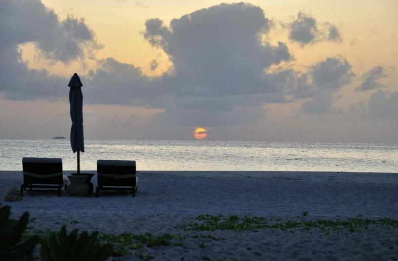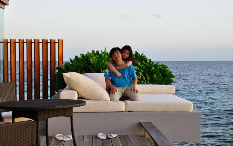 沙屋的躺椅。我们这个屋子不是太好,躺椅在里面,看不到大海的全貌